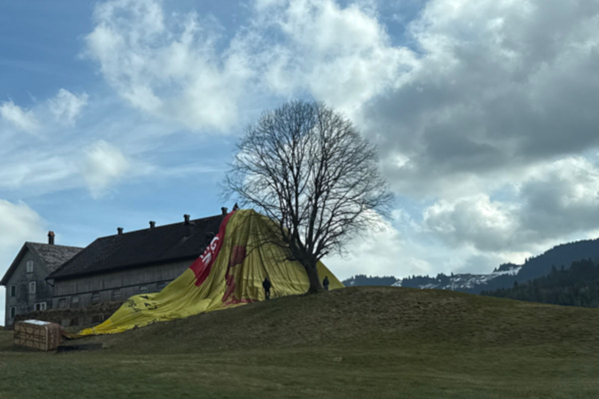Kurz vor Samstagmittag (28.02.2026) landete ein Pilot eines grossen Heissluftballons, besetzt mit mehr als 10 Personen, auf einer Wiese in Gonten.