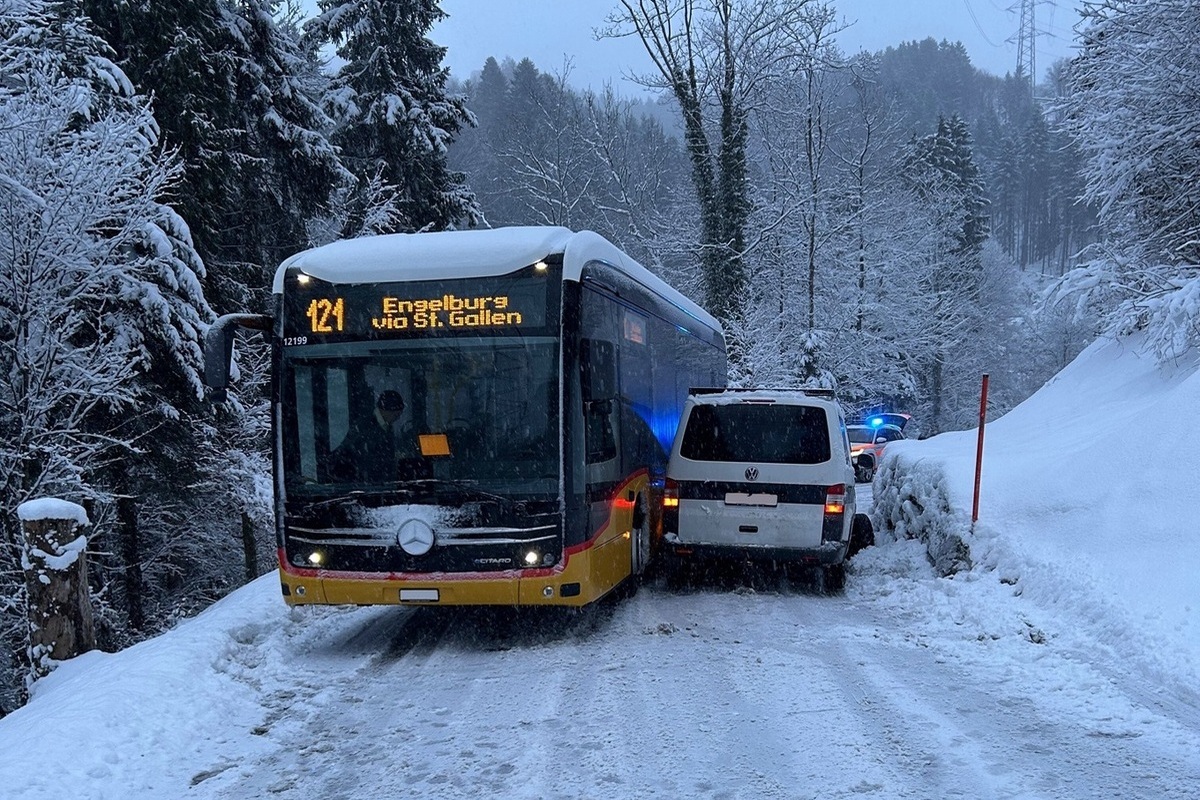 Kurz nach 16.00 Uhr fuhr ein 31-jähriger Mann mit seinem Lieferwagen von Speicherschwendi in Richtung Rehetobel, als ihm vor einer Rechtskurve ein Postauto entgegen kam. Aufgrund der engen Platzverhältnisse lenkte er zum Kreuzen zu weit nach rechts.