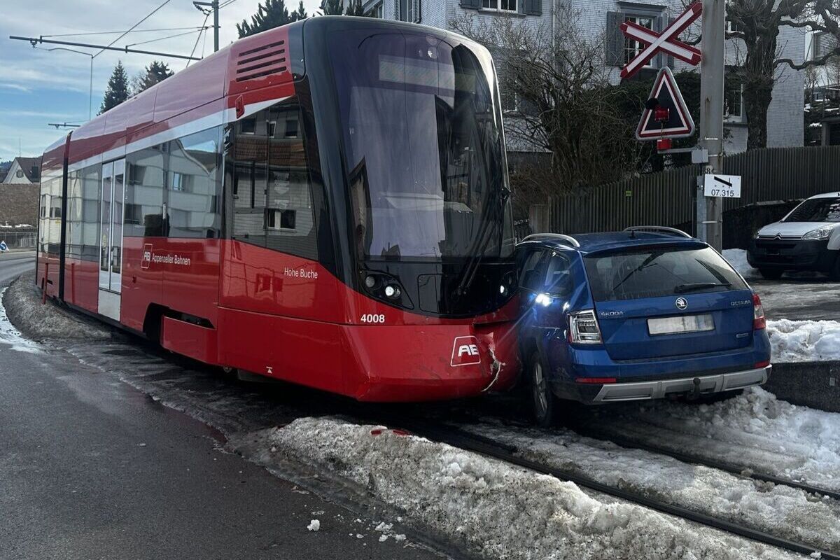 Eine 65-jährige Lenkerin fuhr kurz nach 12.30 Uhr rückwärts von der Liegenschaft Hauptstrasse 47 über die Geleise der Appenzeller Bahnen in Richtung Hauptstrasse. Zur selben Zeit kam von Speicher her in Richtung St. Gallen eine Zugkomposition der Appenzeller Bahnen um die Kurve.